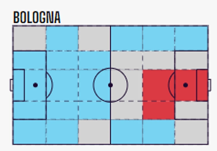 Оборона «Болоньи» – сильная сторона. Команда защищается с мячом в ногах, заставляя соперников гоняться в попытках его отобрать. Пропустили 23 мяча – четвертая лучшая оборона чемпионата, шестая – по допущенным xG.