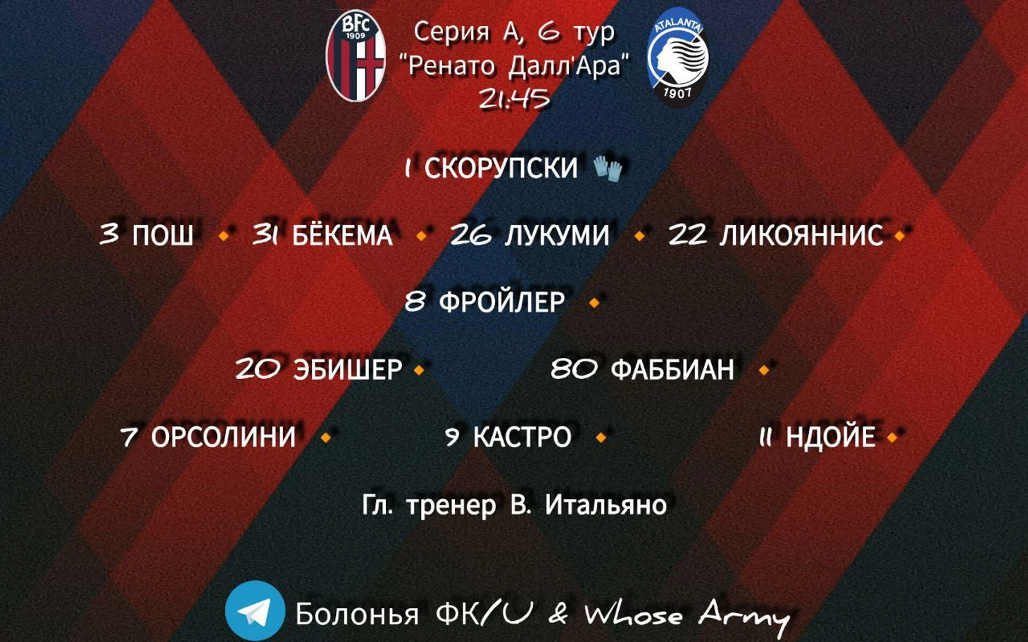 Второй тайм начался с прекрасного гола «Болоньи»: Кастро ушел от защитника и, не входя в штрафную, попал в дальний. Счастье было недолгим: Лукуми потерял мяч в билд-апе и привез опасный штрафной, схлопотав вдобавок удаление.