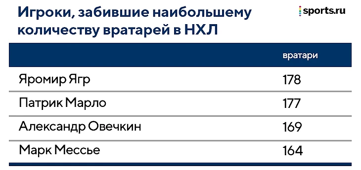Список жертв Овечкина продолжает пополняться: в прошлом матче с «Сан-Хосе» пострадал Каапо Кяхкенен – 168-й пропустившим от него вратарь, в понедельник под следующим номером добавился Феникс Копли. По этому показателю Алекс – третий в истории, до лидирующего Ягра осталось всего 9 голкиперов. Можно присмотреться, например, к Илье Сорокину или Петру Кочеткову, которым Ови еще не забивал.
