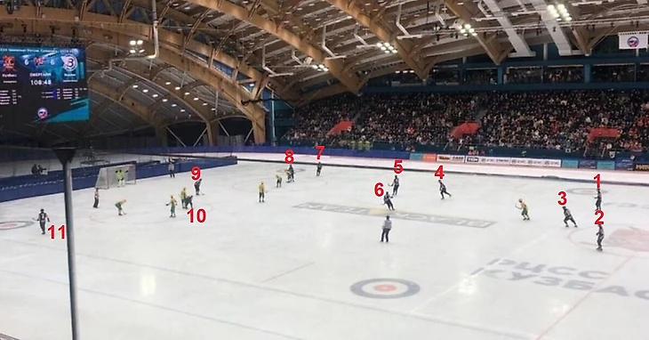 Но довольно опасны и угловые – в хоккее с мячом голы с них забивают чаще, чем в футболе. Например, «Водник» в этой регулярке забил 31 гол с угловых из 161: почти каждый пятый мяч команды – с углового.