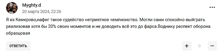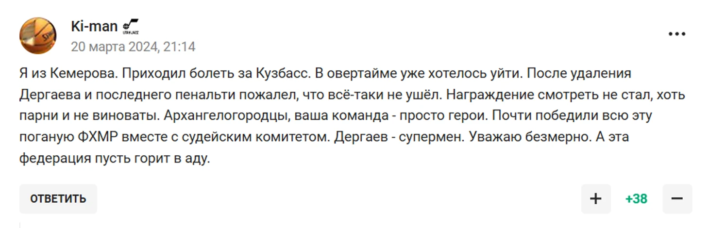 Такое судейство рассердило не только архангелогородцев, но и кузбасских фанатов. Комментарии говорили сами за себя: