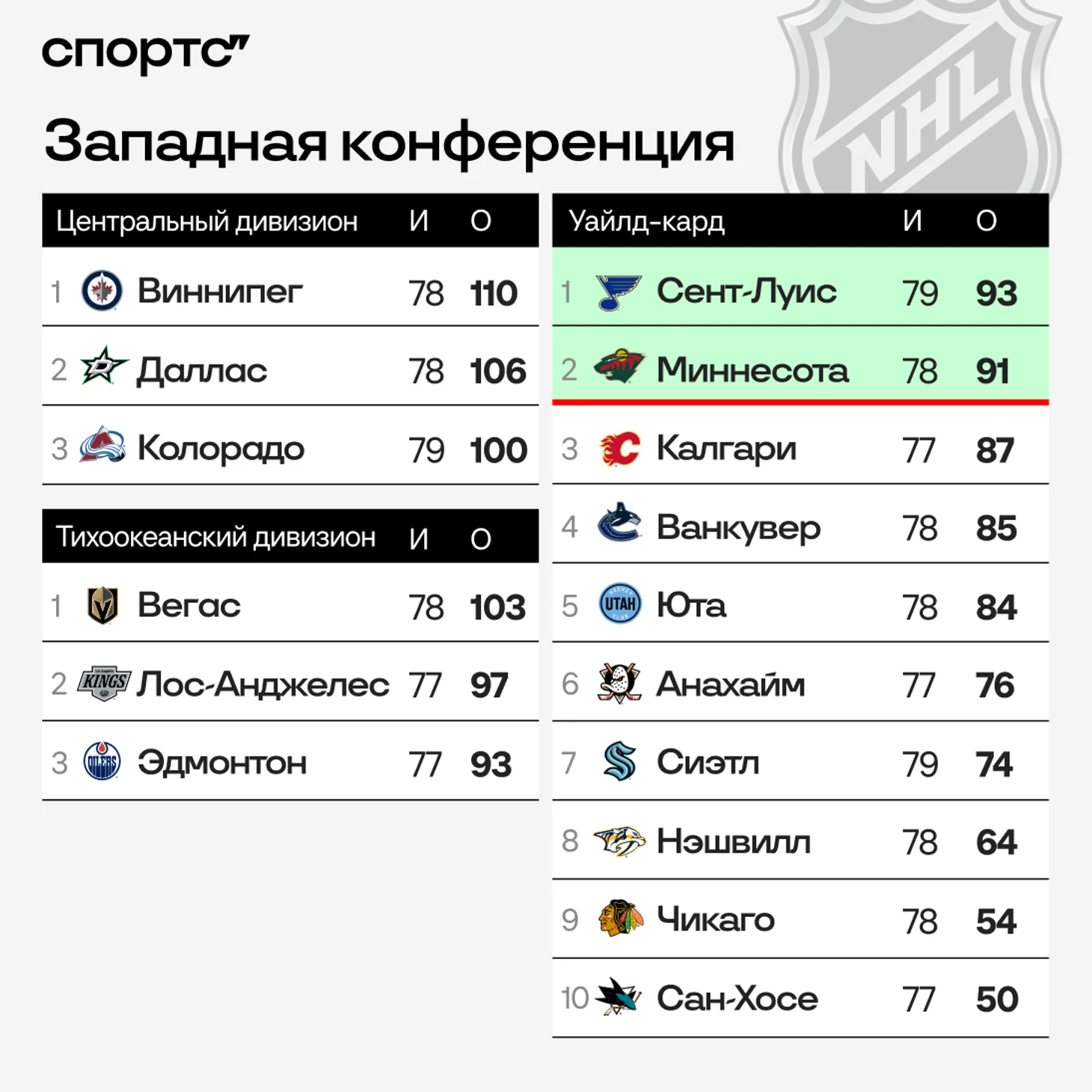 Следующее же поражение – в матче с «Вегасом» (2:3) – оставило «Ванкуверу» только математические шансы на плей-офф. Сайт moneypuck.com давал всего 1,3% вероятности на его попадание в зону уайлд-кард. «Кэнакс» нужно было взять 9 из 10 очков в оставшихся матчах и надеяться на четыре осечки «Миннесоты». Даже одно поражение в основное время перечеркивало математические шансы. При теоретическом равенстве очков «Миннесота» бы расположилась выше за счет большего количества побед в основное время.
