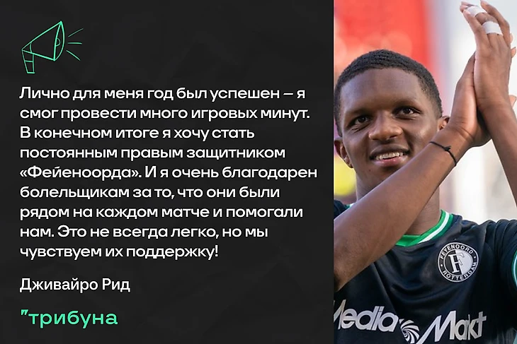 Талант Дживайро подтверждает не только его игра, но и авторитетные издания. В конце прошлого года крупнейшая теле- и радиокорпорация Нидерландов NOS традиционно составила список «великих» голландских талантов – за 2024-й год в него попал и Рид.