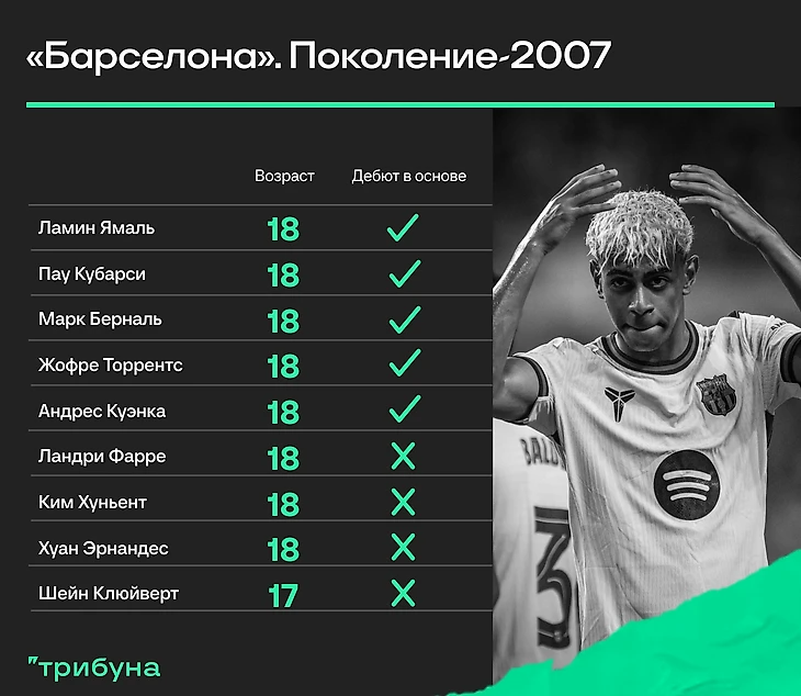 Конечно, возрастное ограничение не запрещает молодым талантам быстрее двигаться из группы в группу благодаря своей игре. Ямаль в 15 лет вовсю выступал за «Барсу Атлетик» и дебютировал в Ла Лиге, Кубарси в 16 начинал сезон в резерве основным защитником – примеров можно найти очень много.