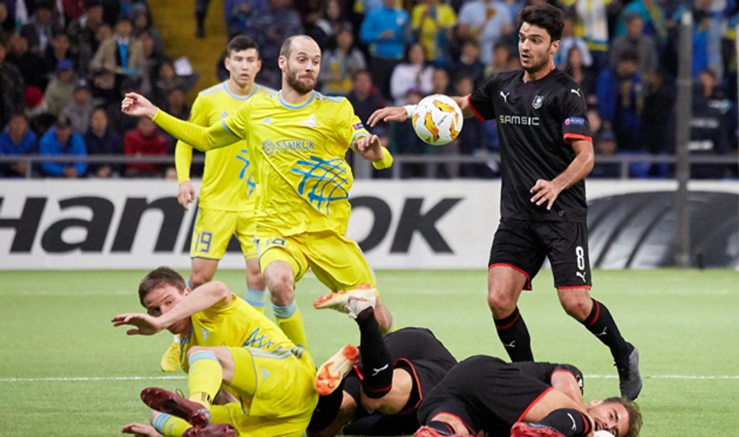 Закончим этот список недавним триумфом астанинцев в матче против французского «Ренна» на групповом этапе Лиги Европы сезона 2018/19. Квартет состоял из следующих команд: «Астана», «Динамо» Киев, «Ренн» и «Яблонец». Такая группа была вполне по силам представителям Казахстана, и поначалу все шло здорово. В первом туре «Астана» добыла трудовую ничью в Киеве, а во втором туре и вовсе смогла уверенно одолеть крепкий французский середняк 2:0, благодаря голам Зайнутдинова и Томасова. Эта победа над клубом из топ-5 лиг стала второй для казахстанского футбола, и была очень важна с точки зрения турнирного положения в группе.