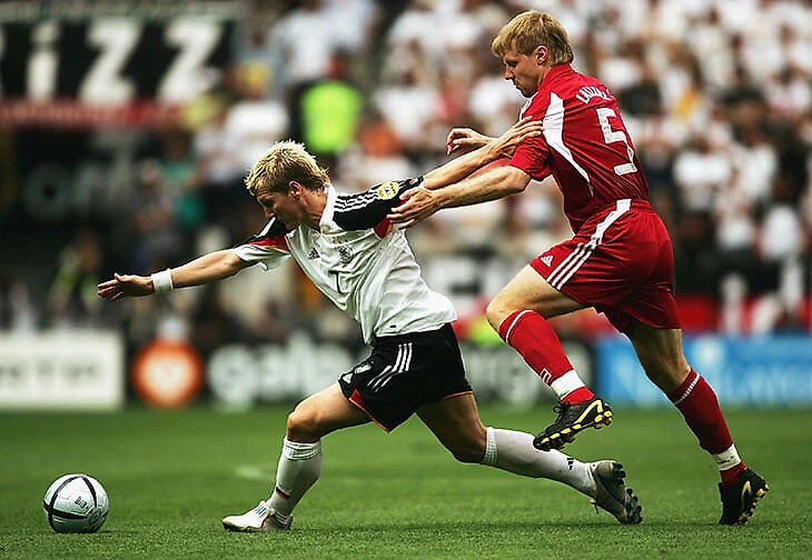 Считалось, что меньше всего шансов у Латвии с немцами, но именно против бундестим латыши выстояли и взяли первое очко на крупном турнире. Команда Старкова в этой игре выглядела не хуже немцев, в паре эпизодов судья не поставил пенальти в ворота Германии. Несколько моментов было у Верпаковскиса, но выручал Оливер Кан. Латыши радовались даже ничьей, а вот немцы оказались в затруднительном положении – всего два очка после двух туров.