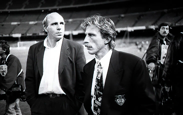 Потом участники встречи поехали на кельнский стадион «Мюнгерсдорфер». Там Майер-Форфельдер представил журналистам временного тренера сборной Феллера и будущего постоянного Даума — того самого, что пару часов назад отказался от этой работы.