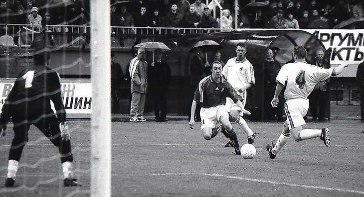 Он подошел к мячу и снова забил. Но это уже закат его российской карьеры, а в 2000-м он был одним из лучших форвардов Высшей лиги – вот мы и проиграли 0:4.