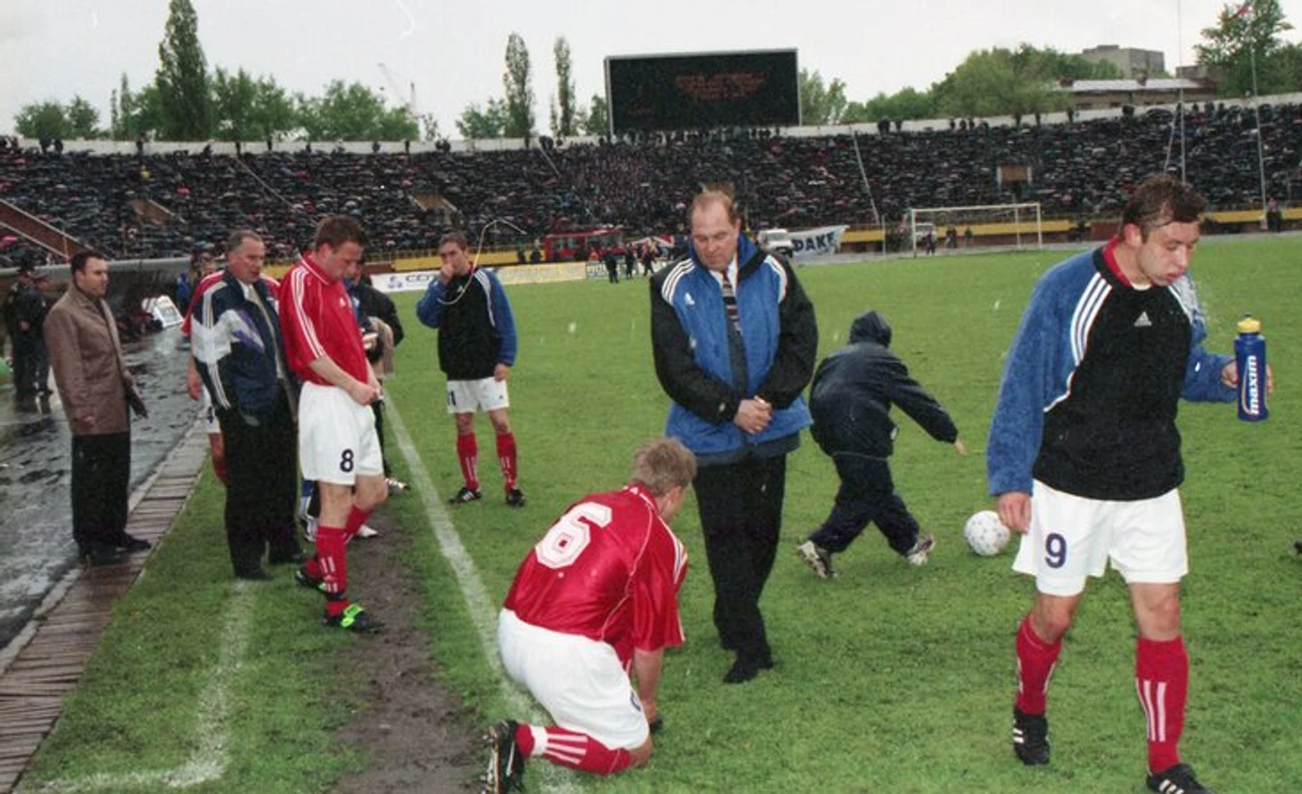 Стадион полный, орет, визжит. В итоге нам забили из вне игры. Беспредел полнейший. Так и не пустили назад в Высшую лигу.