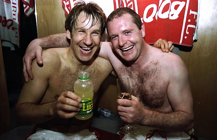 «Мы с Боулди открыли пиво в раздевалке еще до того, как пошли в душ, – вспоминал Мерсон в своей книге How Not to Be a Professional Footballer. – Мы продолжили квасить в автобусе по дороге домой, до утра сидели в ночном клубе, в воскресенье был чемпионский парад на автобусе с открытым верхом, но он у меня, как в тумане. Следующее, что я помню – утро вторника, я не мог найти ключ от дома и разбудил всю улицу».