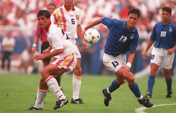 Две крупнейшие европейские сборные сошлись в 1/4 финала на стадионе в крохотном городке Фоксборо недалеко от Бостона. Испания добралась до этой стадии относительно безмятежно – заняла второе место в группе с Германией, Южной Кореей и Боливией, а в 1/8 со счетом 3:0 разгромила швейцарцев. А вот Италия Арриго Сакки с праймовым Роберто Баджо в качестве главной звезды, напротив, еле выползла из квартета, в котором все команды (Ирландия, Мексика, Норвегия) набрали по 4 очка, за счет того, что попала в число четырех лучших команд турнира, занявших третье место.