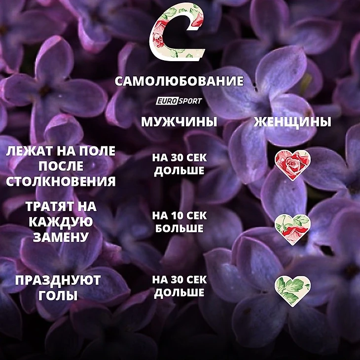 Согласно исследования Мюнхенского технологического университета, мужчины на 30 секунд дольше валяются на поле от любого контакта. Такое поведение профессор Мартин Лэймс объясняет тем, что для мужчин важно то, как они смотрятся в игре, в то время как девушки увлечены самим футболом.