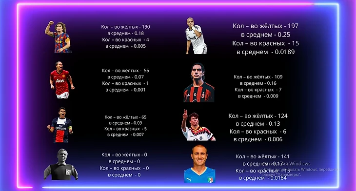 Но как бы то ни было у того же Каннаваро ровно столько же красных, а вот кого можно похвалить за «фейр плей», так это Бобби Мура, который ни разу в своей карьере не получал карточки, если верить статистике, вот уж точно настоящий джентльмен и гений обороны.
