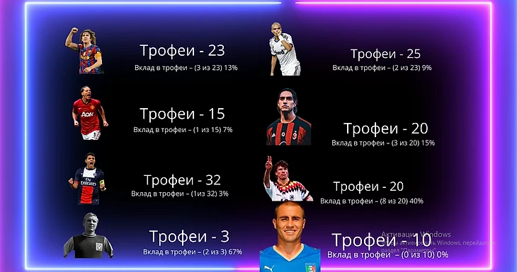 Вклад в трофеи ( % от общего количества трофеев, в которых игрок сыграл значимую роль)