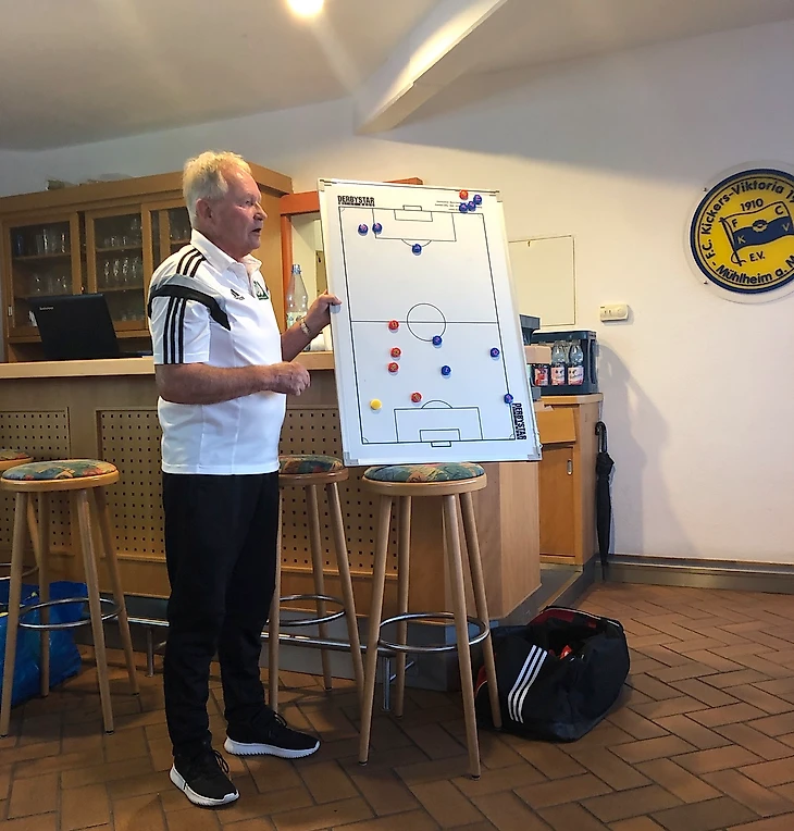 Рассказывать о каждом из занятий очень долго, поэтому я вместо этого немного расскажу о тренере, который вел практические занятия. Его зовут Петер Вальц, ему 75 лет, тренирует он уже более 40 лет и большую часть своей тренерской карьеры он провел в клубах Гессена: Дармштадте, Виктории Грисхайм и ФСВ Фарнкфурте (не путать с Айнтрахтом, это отдельный клуб, который не так давно ещё играл во второй Бундеслиге). Для своего возраста он в прекрасной физической форме, а также, к моему удивлению, ещё и немного знает об анализе данных.
