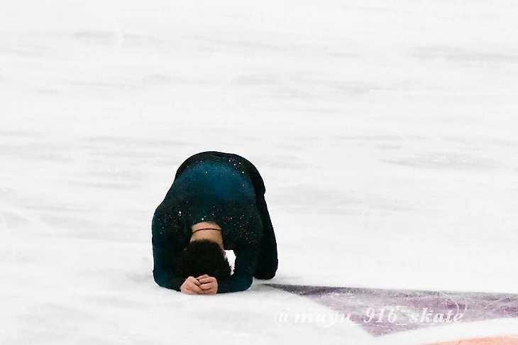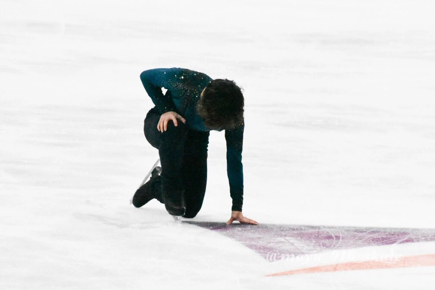 Silence triumphs over music only at the very end, when the last chords of Beethoven’s Moonlight sonata die out. And yet this is precisely the moment when the purely artistic boundaries drawn by the skater’s last movements in his program are transgressed by the noisy reality: the audience that witnessed Shoma’s skate at the Four continents championship, stand up and start cheering and clapping. Shoma, who just won (as it turned out later) the first major title in his senior career, falls on the ice, unable to sustain pain and trying to catch his breath.