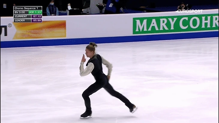 В версии чемпионата Европы-22 эта связь уже не настолько явная, но общая основа движений остается примерно той же, что и в большинстве балетных постановок.