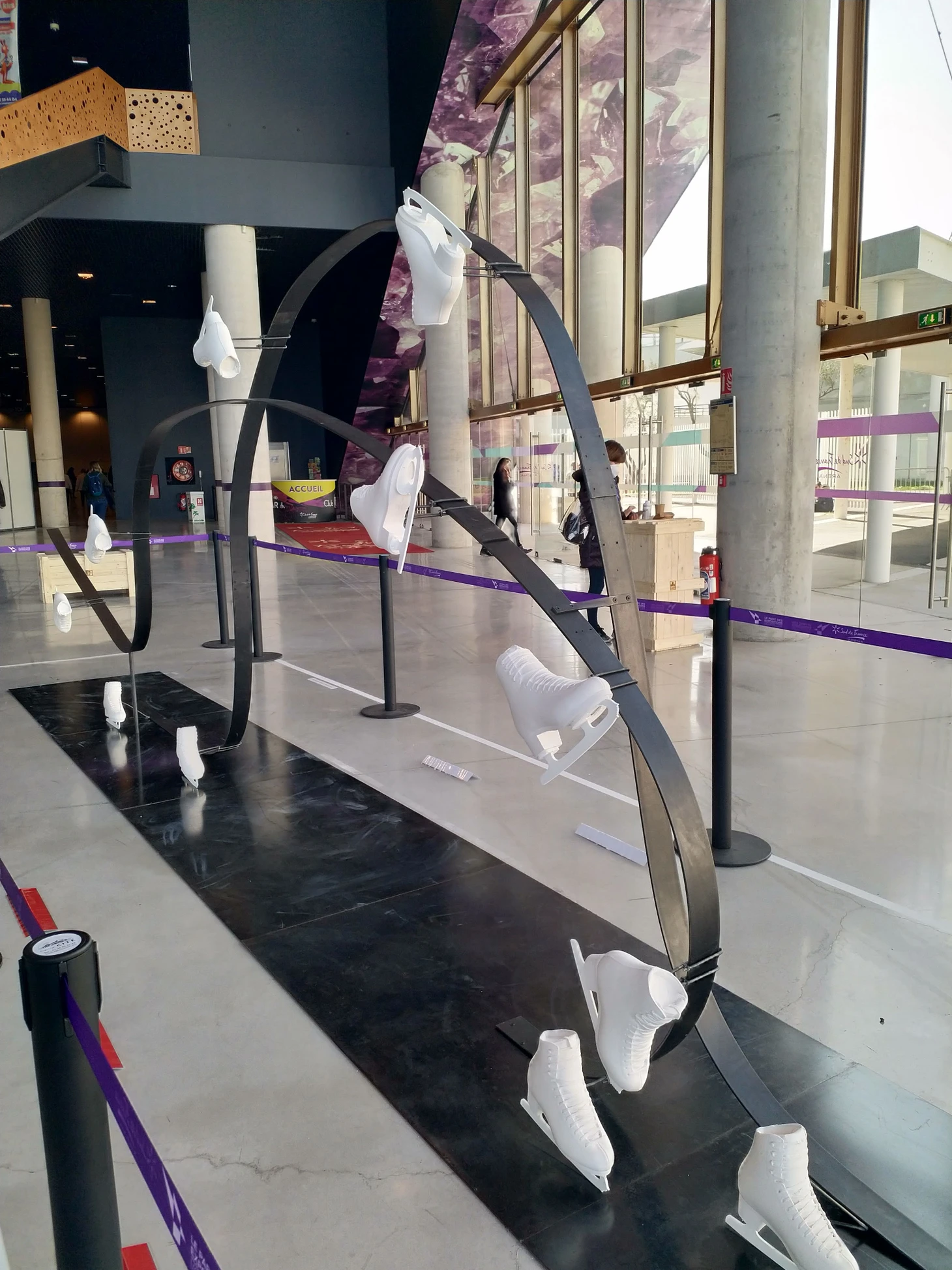 На входе Франция сразу напоминала об одной из своих самых ярких и своеобразных фигуристок: Сурие Бонали. Самым любопытным «экспонатом» небольшой выставки у входа была своеобразная композиция, очерчивающая траекторию полета коньков Сурии во время исполнения сальто назад на Олимпийских играх в Нагано.