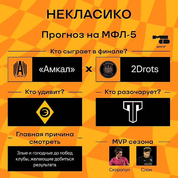 Кажется, что пятый сезон МФЛ – он такой обстоятельный, самый длинный, с финалом в «Лужниках» или где-то еще… Если он закончится матчем «Амкал» – 2Drots, то это будет шикарное завершение!