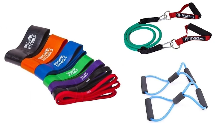 Эспандер. Это самый простой спортивный снаряд, который можно использовать для тренировок дома. Не занимает много места, отсутствует необходимость крепить его к стене или полу. Выбирать подходящее изделие следует исходя из индивидуального уровня натренированности. Кроме того, ориентироваться необходимо на размер и жесткость. Для разных упражнений потребуются минимум два предмета: слабый и тугой.