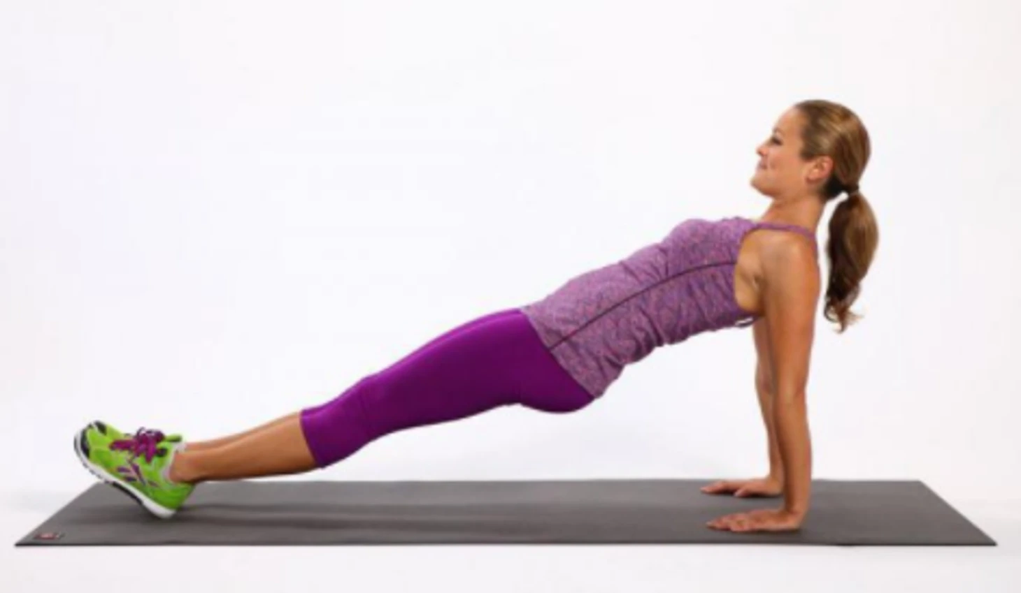 Кисти ставим под плечевой сустав, стопы расставляем на ширину бедер или же просто вытягиваем. В ходе выполнения контролируем, чтобы позвоночник выпрямлялся, а ягодицы находились в напряженном состоянии. Еще один важный момент – не нужно поднимать таз чересчур высоко, так как это нарушает нормальное положение поясничного отдела.