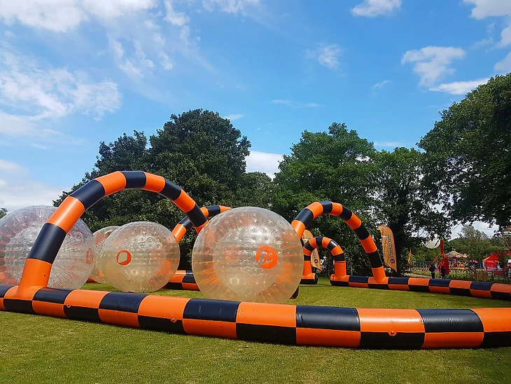 · Сайдтрек. Трасса протяжённостью 350 метров предполагает поездку с поворотами и препятствиями, дополнительно внутрь шара можно добавить воду. Порядка 40 литров достаточно для сохранения баланса в движении.