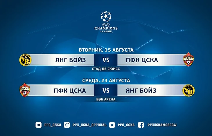 Во вторник, 15 августа, швейцарский клуб «Янг Бойз» на своем поле примет ЦСКА в рамках первого матча раунда плей-офф квалификации Лиги чемпионов. Встреча, которая пройдет в Берне, начнется в 21:45 по московскому времени.
