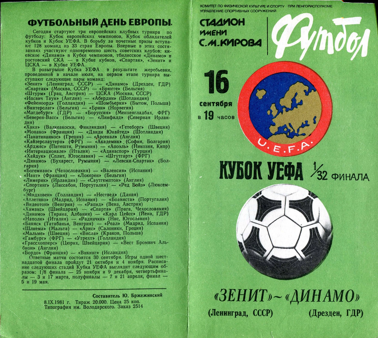 1981 – дебют «Зенита» в розыгрышах еврокубков.