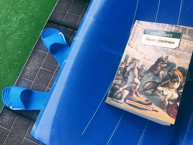 Перелетаем в Испанию, начинается финальная неделя перед матчем. От стадиона до отеля ехать примерно полчаса, поэтому каждый убивает время, как может. Анюков читает в автобусе Сенкевича. Уважение.