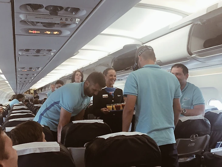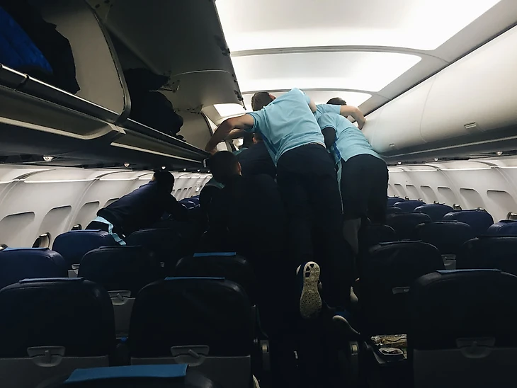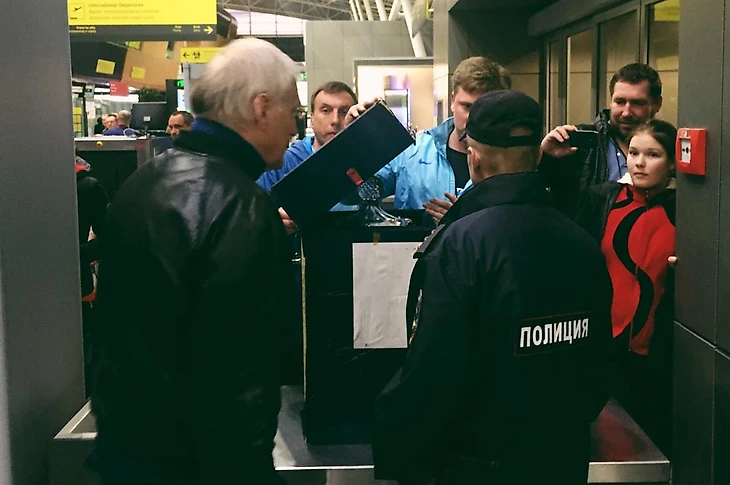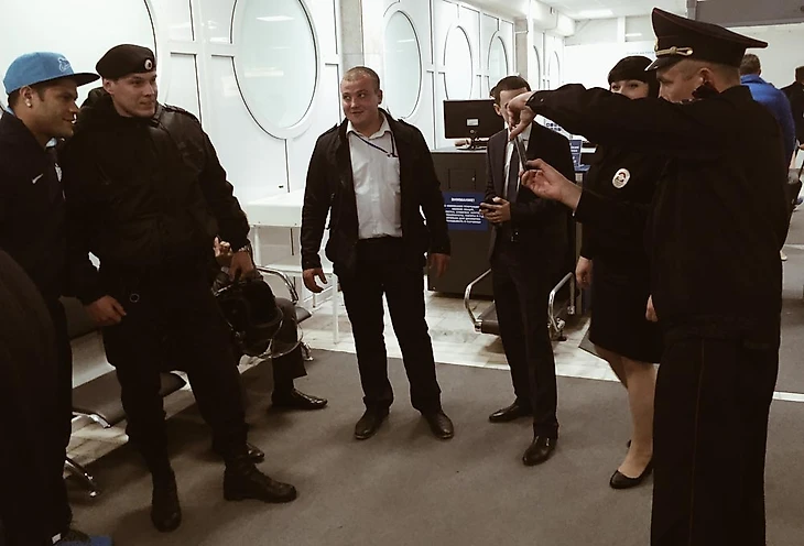 Перед вылетом случается недоразумение — трофейный кейс не влезает в сканер на входе в аэропорт, поэтому приходится доказывать полицейскому, что ничего колющего, режущего и взрывоопасного внутри нет, просто Кубок России. На переговоры уходит минут 10, пока не приходит офицер, который в курсе новостей.