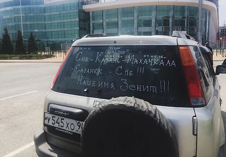 На предматчевом совещании встречаем у стадиона болельщика, который в одиночку отправился на мощнейший выезд и ведет путевой дневник корректором на стекле. Утверждает, что договорился встретиться в Дагестане с Данни. Вынуждены огорчить: Данни уже на пути на операцию в Португалию.