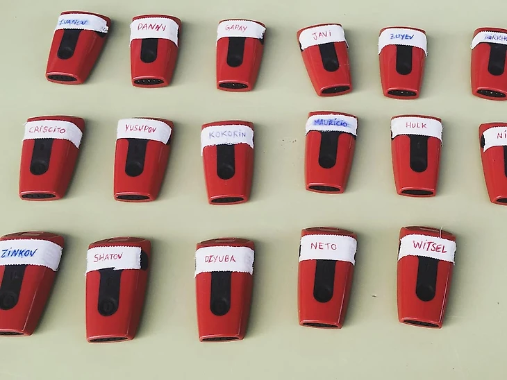 Эти gps-датчики засовывают в специальный жилет и надевают на футболистов, а у поля ставят ноутбук, который сразу же показывает, кто и как работает. Узнать можно не только, кто и сколько пробежал, но и, например, предсказать травму: если кто-то инстинктивно нагружает левую ногу меньше, чем правую, значит, организм понимает, что что-то не так. Тренер Педру, который за ними следит, заявляет, что по диаграммам может узнать любого.