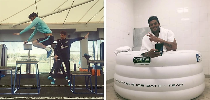 Для Халка и всех желающих в раздевалке сооружают ванную со льдом: на улице уже слишком жарко, поэтому только внутри. Халк садится с секундомером и честно отсчитывает полторы-две минуты. Кроме него раньше льдом злоупотреблял Тимощук, теперь приобщается Лодыгин. То, что слева — это прыжковая серия, к ней вынуждены приобщаться все, но не так охотно.