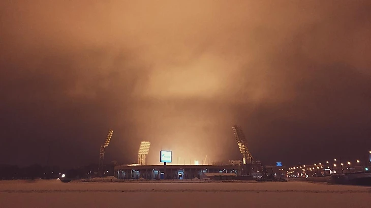 На Петроградке на полгода раньше срока наступают белые ночи: это на «Петровском» включили подогрев газона.