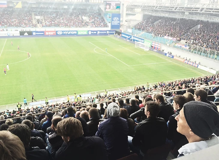 Стадион древний, зато на территории есть школа, церковь и мост. Сажусь в какую-то кабинку, через минуту прибегает возбужденная женщина и сообщает, что сюда нельзя — «ложа жены губернатора». Побеждаем только в дополнительное время, наш сектор все 120 минут поет Круга про «В нашей Твери нету таких» (тверские в восторге) и комментирует передвижения бокового судьи. На пресс-конференцию приходим в школьный спортзал. Ну, хорошо, все-таки не в церковь.