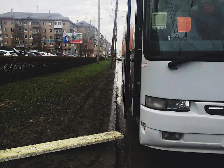 На Урале началась весна. Водитель автобуса заботливо подкладывает деревяшку перед входом, чтобы никто случайно не наступил в Пермь.