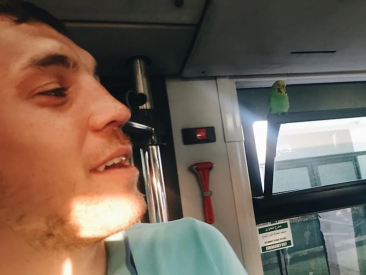 История с животными продолжается: в автобус, который везет от терминала до самолета, залетает попугай. Знал, рядом с кем присесть. Дзюба пытается научить его паре выражений. Безуспешно: попугай понимает только по-арабски и ни на что не реагирует.