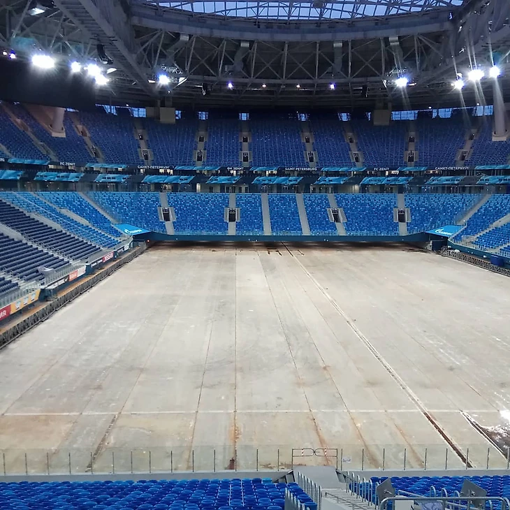 Поле стадиона «Санкт-Петербург» приводят в движение 294 железных ролика, которые перемещаются по 21 рельсу, и 32 тяговых модуля, оснащенных электроприводами. Для стабилизации хода используется железобетонный желоб, проходящий посередине движения. Для уменьшения нагрузки на механизмы используется система воздушных подушек, которые нагнетают воздух и снимают до 50% веса конструкции.