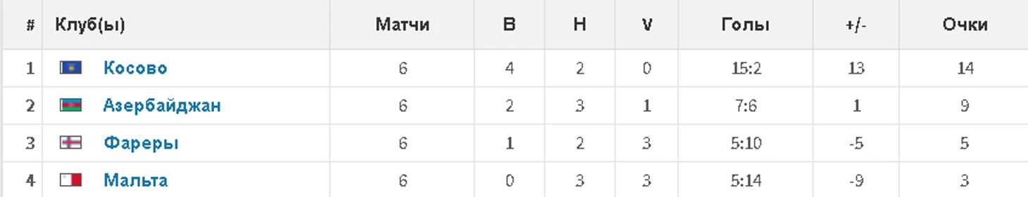И вот мы дошли до нынешнего отборочного цикла. Складывалось ощущение,что и тут Косово финиширует на 4-5 строчке,но команда во главе с Бернаром Шалландом (который может доходчиво объяснить,что такое сумасшедший прессинг) выступает вопреки ожиданиям скептиков,сначала сыграв вничью с болгарами и черногорцами (по 1:1),а затем обыграв на выезде Болгарию(3:2),по игре переиграв их на куда больший счет(владение 61 на 39 в пользу гостей,удары 15-5 в их же пользу) и сенсационно выиграв матч у фаворитов,чехов (2:1),хотя тут уже преимущество было не столь ярким. В итоге Косово имеет вот такую таблицу на сегодняшний день.