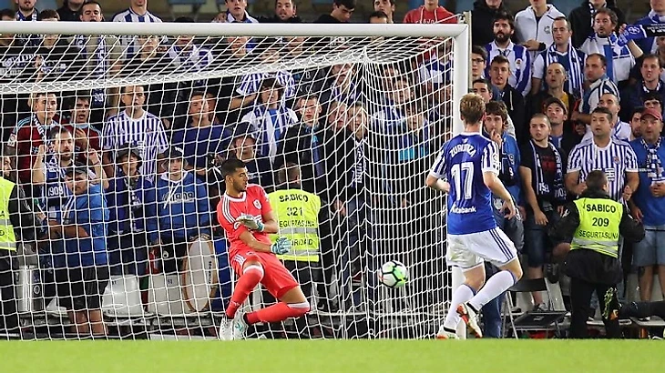 Но после уже практически неизменно внутренней стороной левой стопы пытается направить мяч в правую (относительно себя) «шестёрку». Правда, успешность такого приёма у Велы меньше двух вышеназванных его одноклубников: только около 83% пенальти мексиканец трансформирует в голы. Наперекор же достижениям сан-себастьянцев в нападении игра команды при обороне собственных владений выглядит куда менее впечатляющей. И дело не только в шквале травм, обрушившимся на центральных бэков испанского клуба.
