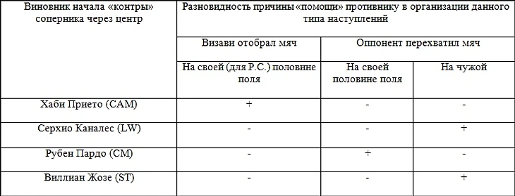 Указанная ранее слабость обороны сан-себастьянского коллектива состоит ещё и в том, что защищающиеся баски очень даже способны сами себе создать трудности. Да так, что чуть ли не треть подобных эпизодов трансформируется в изменения счёта на табло не в пользу команды Доностии. Детализация всех этих моментов приводится в нижерасположенной таблице: