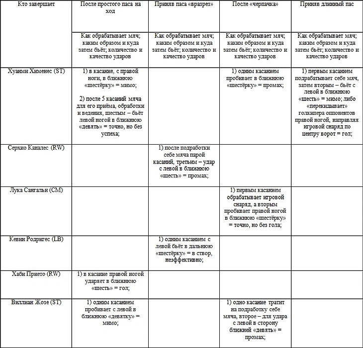 Позиционные атаки на владения Рульи по левой бровке его команды выглядят менее перспективными. Это же касается и попыток самостоятельных прорывов игроков через данный фланг в подобных случаях. Ну а чтобы иметь хоть какие-то шансы огорчить «бело-голубых» изучаемым образом, нужно знать, «из-под» кого, куда и как следует пасовать, а после – что лучше сделать для правильного завершения атак такого плана.