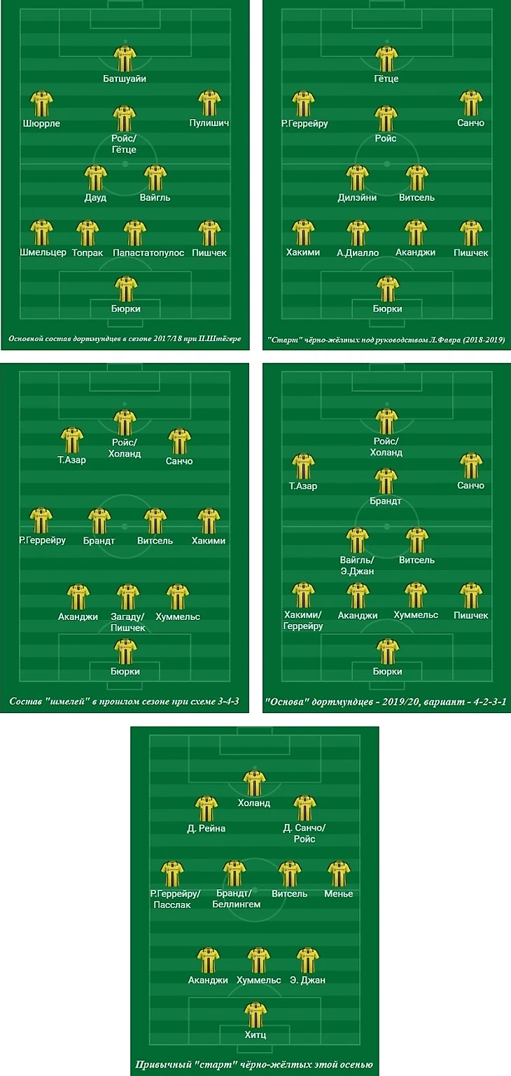 Похоже, что настала пора для дортмундского коллектива улучшить свои результаты как минимум в сильнейшем клубном турнире старого континента. Ведь для этого у «Боруссии» есть все предпосылки. Прежде всего – грамотный тренер, за довольно короткий срок поставивший «шмелям» качественную, узнаваемую, зрелищную игру. Достигнуто это было в том числе за счёт перехода от весьма тривиальной в наши дни схемы «4-2-3-1» на довольно необычную, лихую систему типа «3-4-3».