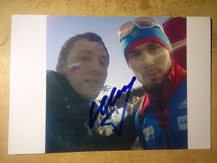 У меня много кумиров в разных видах спорта и с большинством из них, конечно же, есть совместные фото и автографы (с кем-то даже не одно, и не два, и не три). Могу долго рассказывать, почему они мои кумиры... Посмотрел в блоге прошлую подборку с множеством фото и обнаружил, что там так мало представителей такого прекрасного зимнего вида спорта, как биатлон. Долго не знал, кого выбрать, но, когда вчера Антон Шипулин прошел (впервые за долгое время) гонку с четырьмя рубежами без промахов, решил, что здесь будет его автограф.