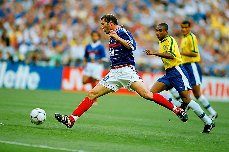 Первый чемпионат мира я открыл для себя на последних разворотах журнала «7Дней». В сердцевине кроссворда было это фото Зидана. К тому моменту я что-то слышал уже про футбол, но широкий шаг лысеющего мужика в окружении бразильцев объяснил мне всю скорость и свободу этого вида спорта.