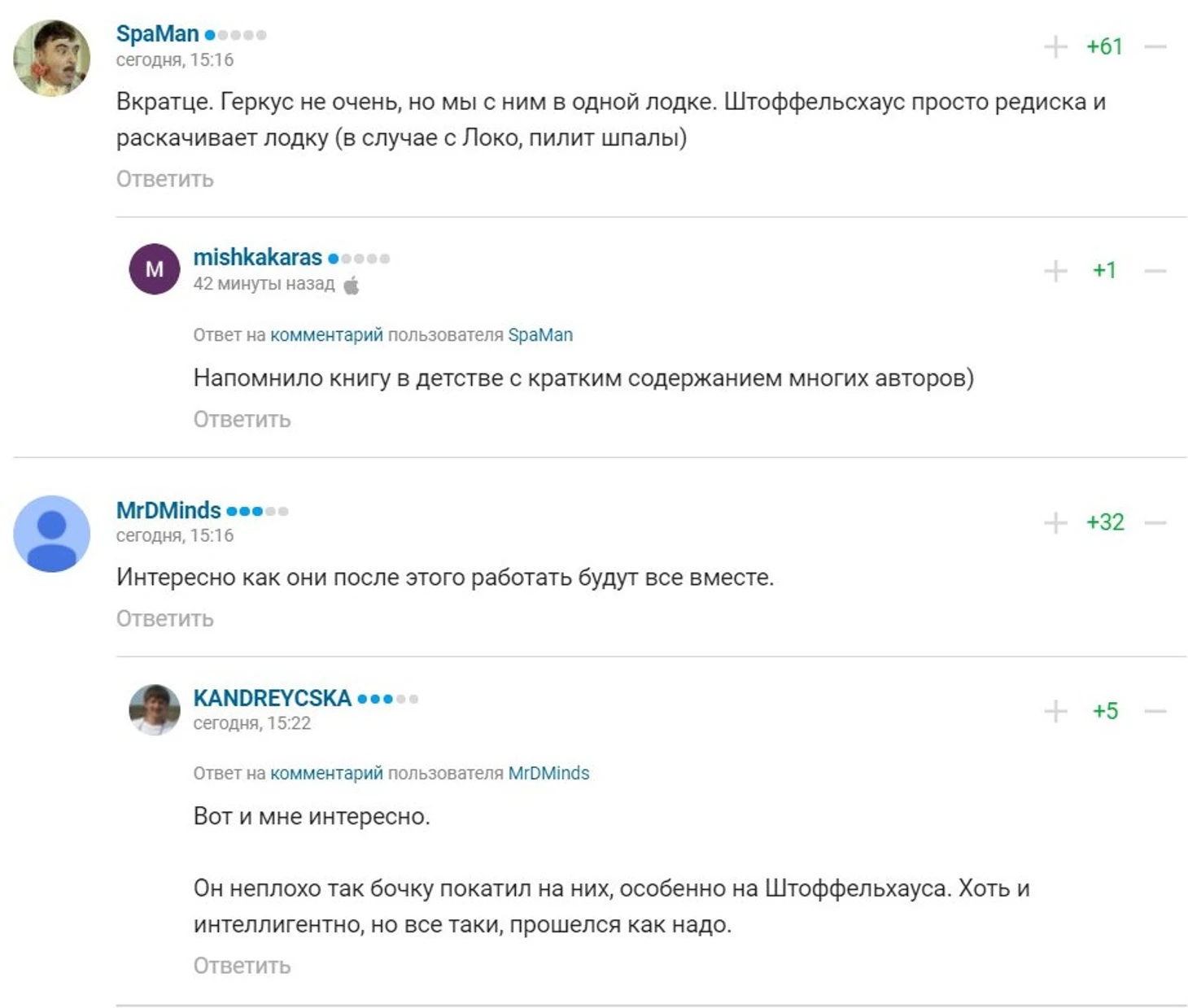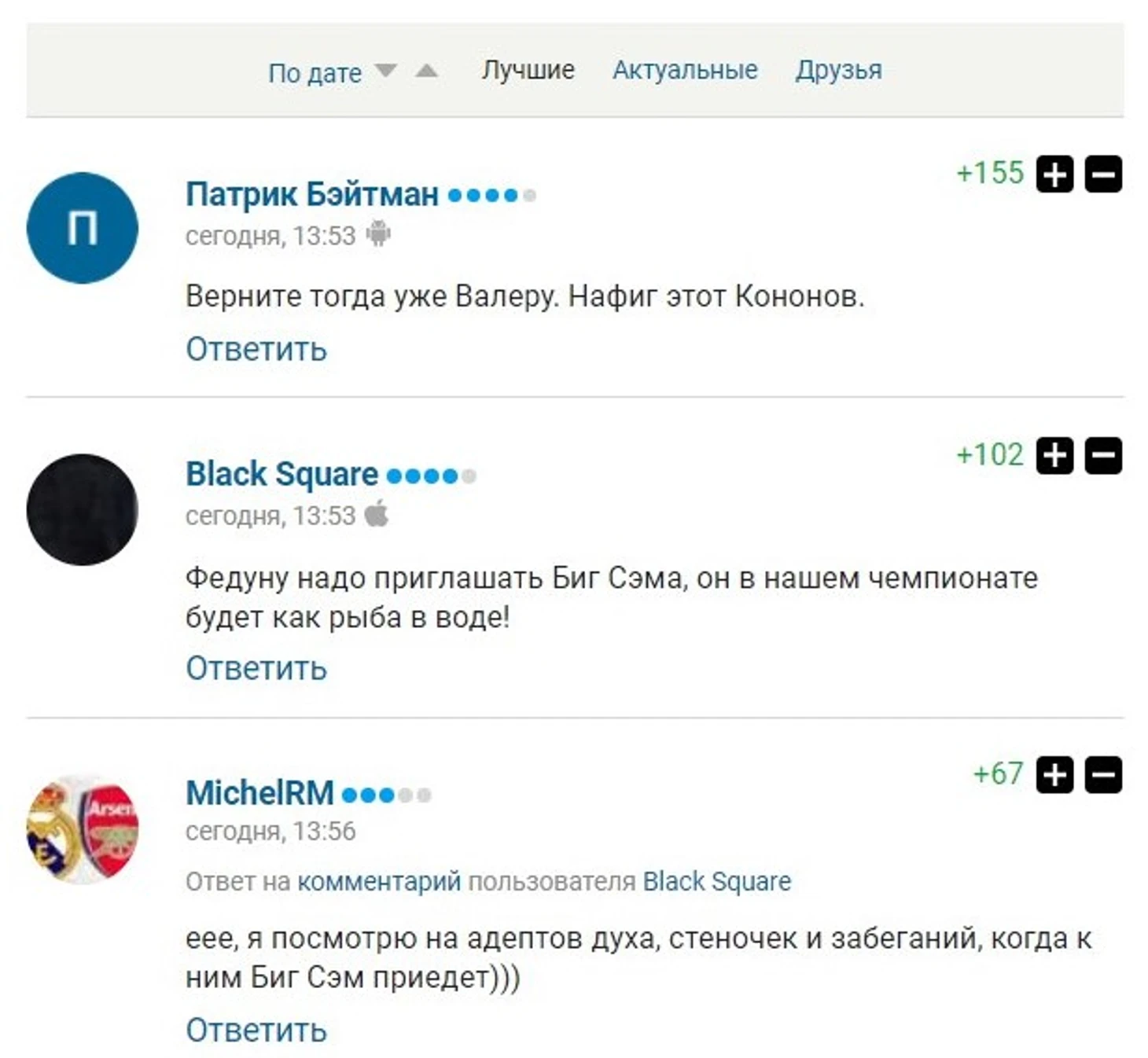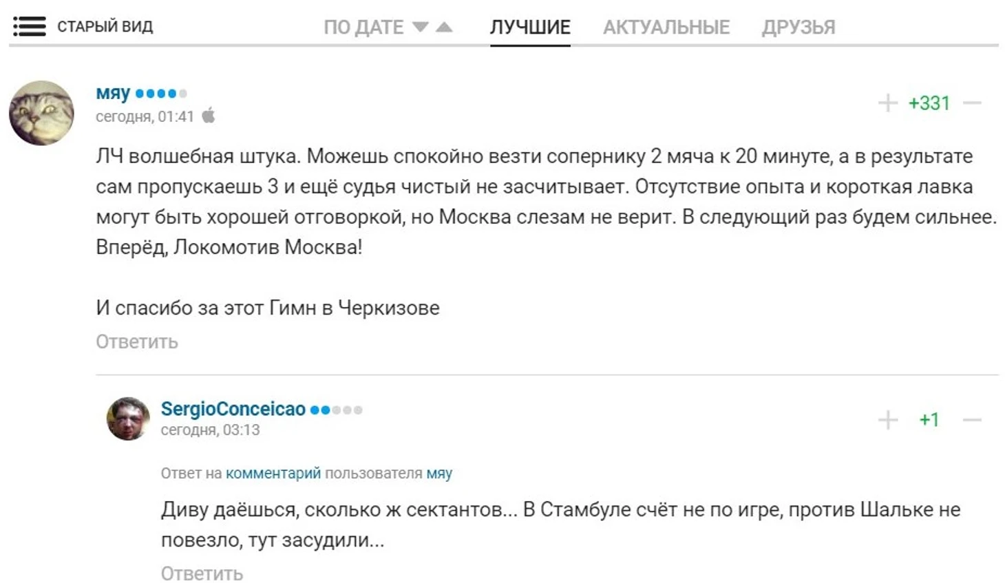 Важный момент. Двухуровневые комментарии пока появились только в веб-версии Sports.ru. В мобильной и приложениях все пока по-старому.