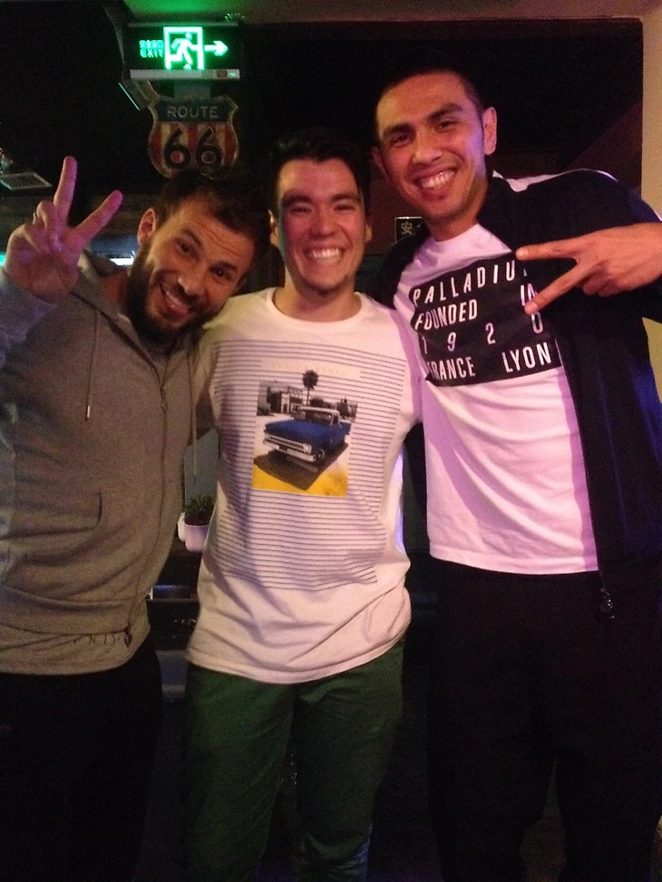 «Да не парься, я знаю тебя, ты на фанку ходишь, – сказал Анзур. – Ну я же слышу, что ты там кричишь». И через пару месяцев он заходит в бар с Саболчем Хусти. Я не мог упустить такого шанса и попросил о фото, они согласились.