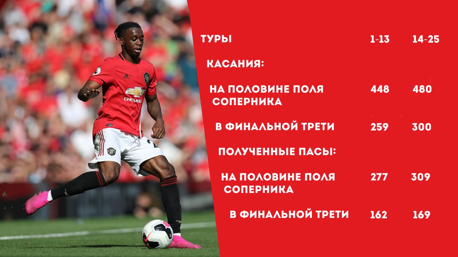 Касания, как и передачи на чужой половине и в финальной трети поля, достаточно ощутимо выросли. При этом не стоит сбрасывать со счетов тот факт, что МЮ исторически имеет гигантский перекос во владении через левый фланг, так как по религиозным соображением отказывается покупать качественных правых вингеров.