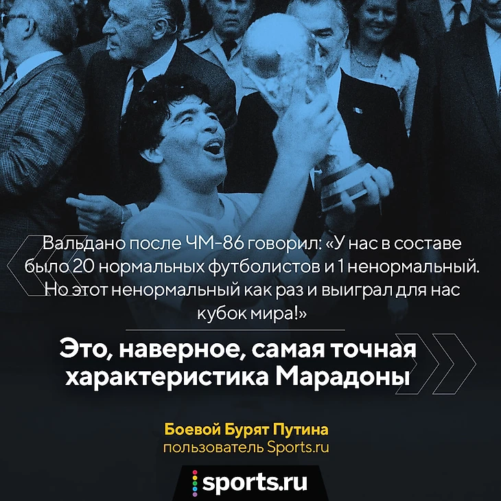 Для меня Марадона – это пас через пол поля на Буррачагу и эмоции от победы Аргентины, которые я до сих пор помню спустя 34 года. Поймали меня только ночью, когда обратно шел, выгнали из лагеря, домой к маме отправили».