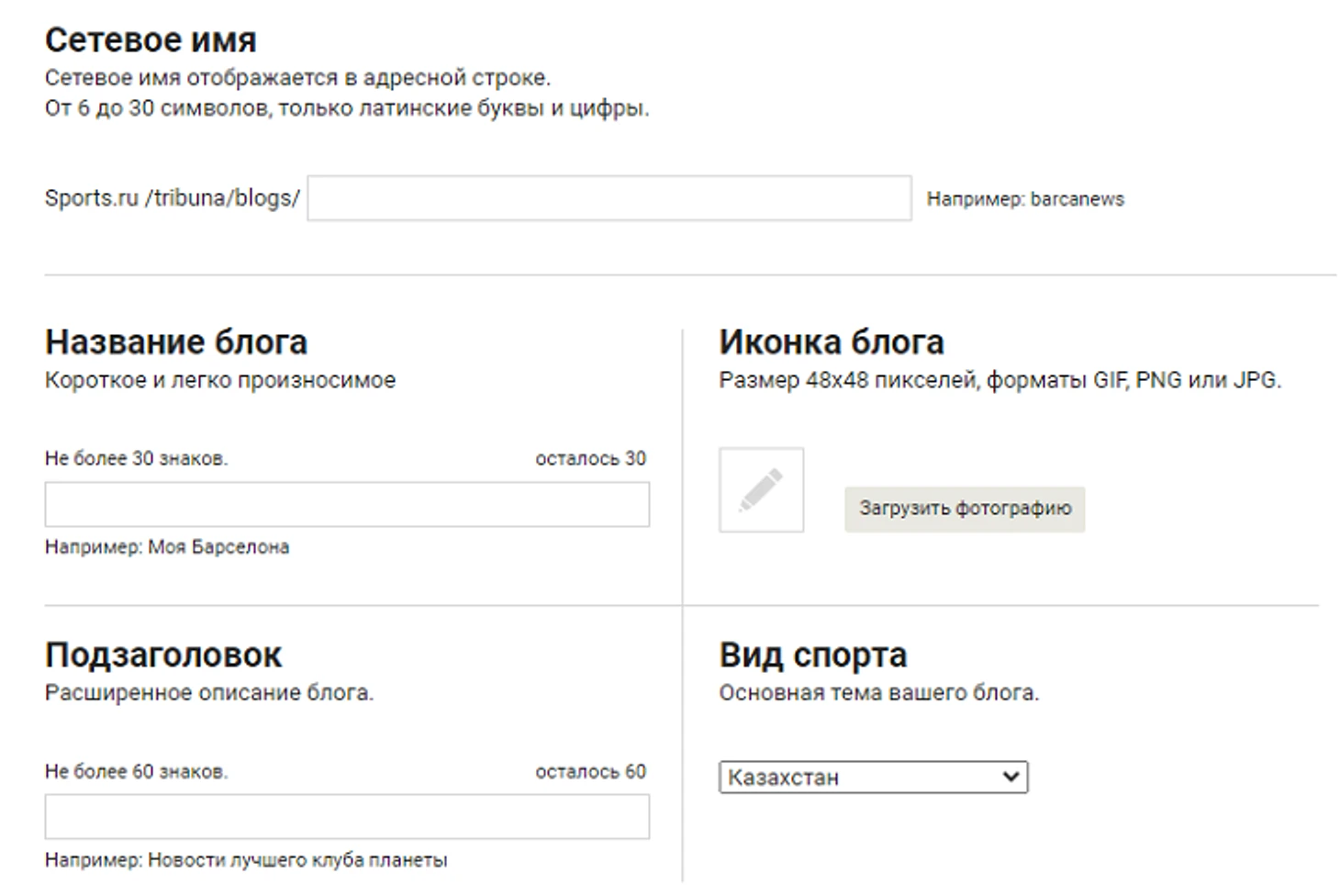 От того, какой вид спорта вы выберете при создании блога, зависит, в каком разделе будут появляться ваши записи. Конечно, менять раздел можно будет и прямо во время публикации каждой отдельной записи – вас никто не ограничивает. Но если вы собираетесь писать о казахстанском спорте, рекомендуем указать «Казахстан» – в будущем все ваши записи будут появляться в списке новых постов всей Трибуны и списка обновлений вашего раздела.